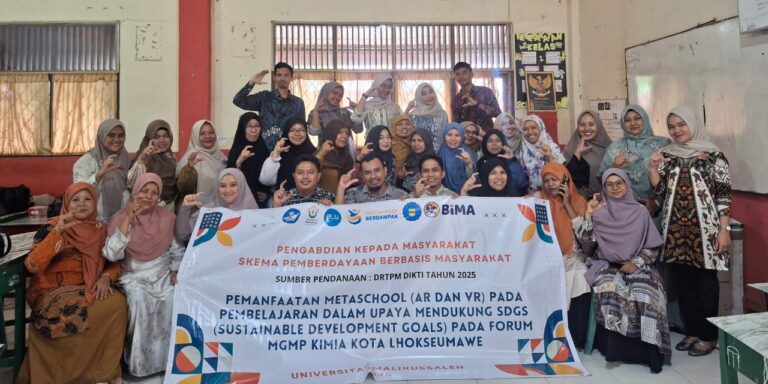 Aceh, kopelmanews.com – Sebanyak 32 guru anggota Musyawarah Guru Mata Pelajaran (MGMP) Kimia Kota Lhokseumawe mengikuti pelatihan pembuatan media pembelajaran berbasis Augmented Reality (AR) dan Virtual Reality (VR) melalui program Metaschool yang digelar oleh tim pengabdian Universitas Malikussaleh. Kegiatan ini telah berlangsung selama empat hari, yaitu pada 31 Juli, 1 Agustus, 7 Agustus, dan 8 Agustus 2025 dan akan terus berjalan sampai 15 Agustus 2025. Lhokseumawe, (14/8/2025 )