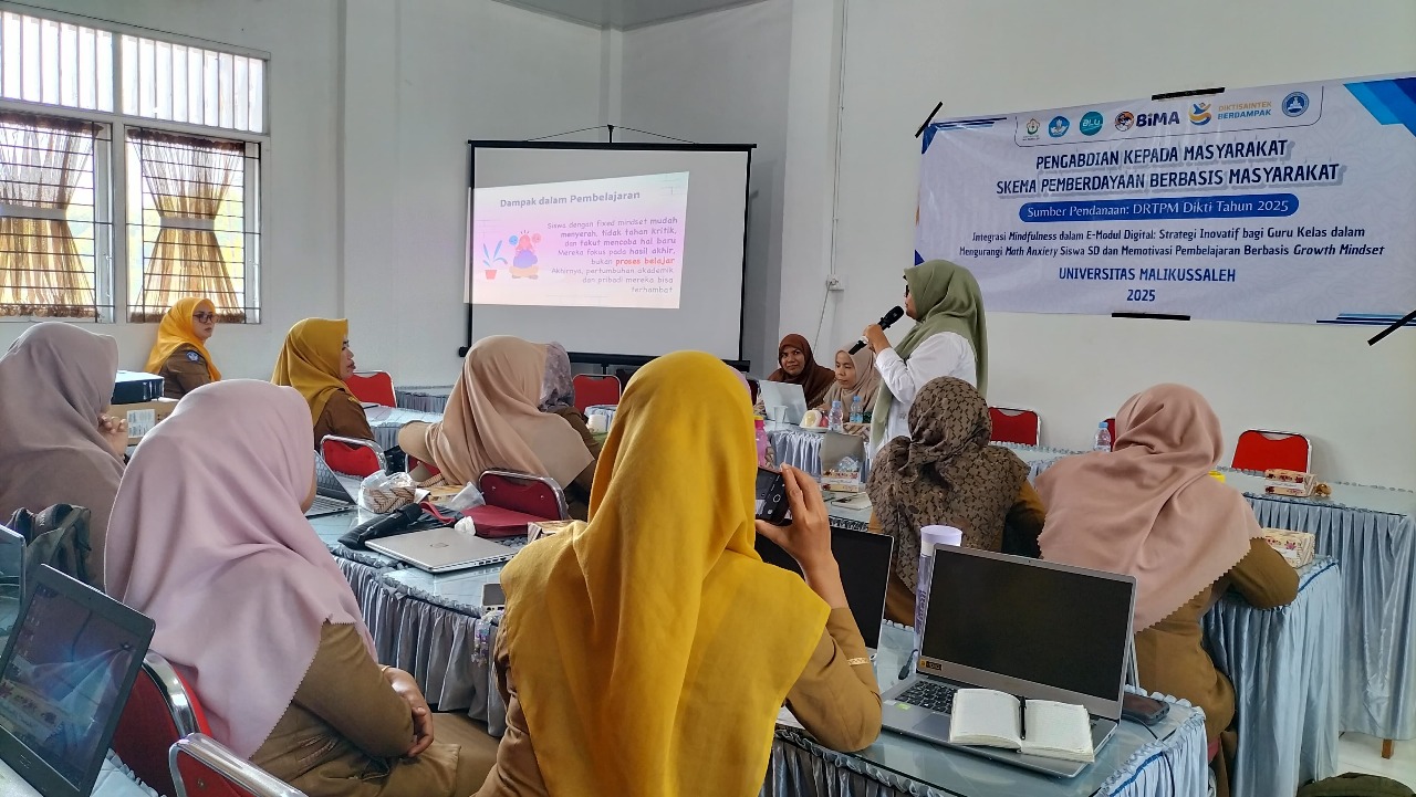 Aceh, Kopelmanews.com -Dalam rangka peningkatan kualitas pembelajaran matematika di tingkat sekolah dasar, telah dilaksanakan kegiatan Pelatihan Integrasi Mindfulness dalam E-Modul Digital: Strategi Inovatif bagi Guru Kelas dalam Mengurangi Math Anxiety Siswa SD dan Memotivasi Pembelajaran Berbasis Growth Mindset pada tanggal 28–30 Juli 2025.