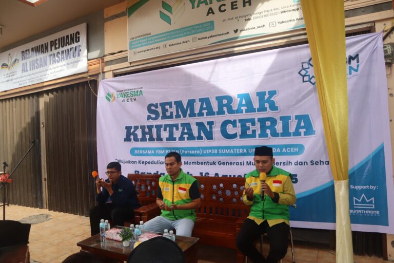 Aceh, kopelmanews.com – YBM PT PLN (Persero) UIP3B SUMATERA UPT BANDA ACEH Berkolaborasi bersama Lembaga Amil Zakat Nasional ( Laznas) YAKESMA Cabang Aceh dan Sunathrone Indonesia Aceh Melaksanakan Khitan Masal untuk 50 orang anak. Peserta adalah yatim dan Dhuafa yang tersebar di beberapa kecamatan di Kabupaten Aceh Besar dan Kota Banda Aceh. Banda Aceh, (16/8/2025)
