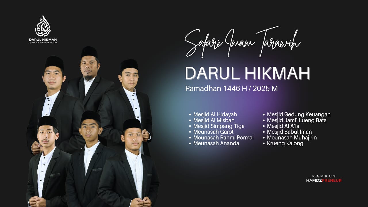 “Safari imam tarawih ini adalah salah satu program pengabdian masyarakat di Darul Hikmah dengan mengirim imam tarawih ke mesjid dan meunasah di Banda Aceh dan Aceh Besar selama bulan suci Ramadhan. Kedepan safari imam tarawih ini juga akan dilakukan dengan mengirim imam tarawih keluar Aceh dan Indonesia insya Allah” imbuhnya.