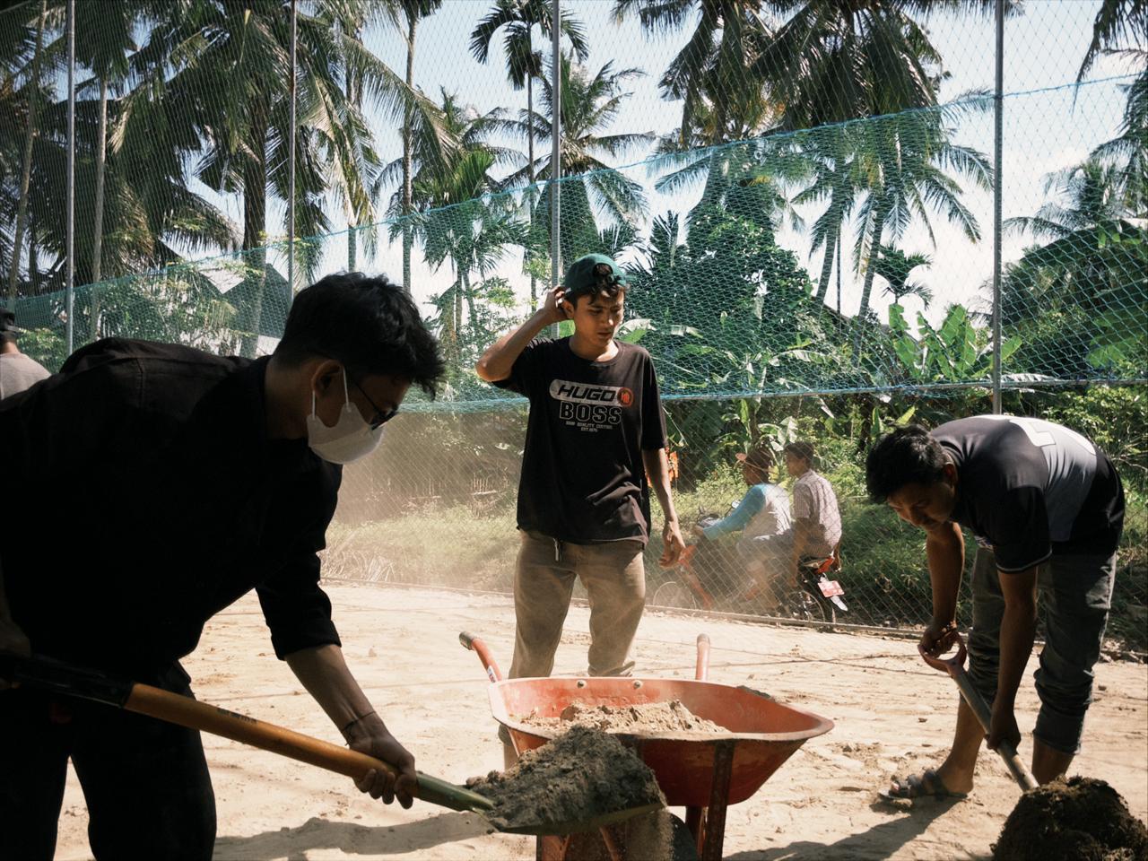 Melihat kondisi tersebut, mahasiswa KKN berinisiatif melakukan aksi nyata sebagai bentuk kepedulian dan pengabdian kepada masyarakat. Kegiatan pembersihan lapangan voli ini dilakukan bersama aparatur desa dan warga setempat. Mahasiswa dan masyarakat bahu-membahu membersihkan lumpur serta merapikan area lapangan agar kembali layak, aman, dan nyaman digunakan.
